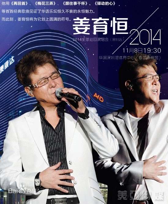 2014年11月8号晚7:30姜育恒告别歌坛30年全球巡演深圳站演唱会,必将会是一个难忘的夜晚!二手车领军品牌澳康达与您相约华润深圳湾体育中心,一起见证经典再现,重温那记忆中的歌声。
